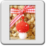 Die Schlüsselanhänger gibt es mit kleinen, feinen, selber gehäkelten Pilzchen, auf denen noch kleine Perlen aufgenäht sind. Aufgehängt sind diese an einem Schlüsselhaken mit schönen Perlen und Swarovskisteinen.