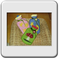 Es können verschiedene Formen (Sternchen, Pilze, Herzen, Blumen usw.) aufgefilzt oder auch aufgenäht (z.B. Schmetterlinge) werden. Die Wärmflaschen bekommen dann noch einen schönen Kragen und werden um den Hals noch etwas verziert.